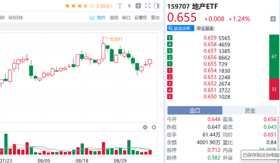 地产ETF(159707)实现三连阳,今天逆势上涨1.24%。