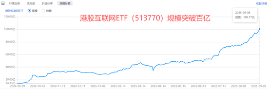 值得关注的是,港股互联网ETF(513770)最新规模已突破100亿元,创历史新高;年内日均成交额近6亿元,支持日内T+0交易,不受QDII额度限制,流动性佳。