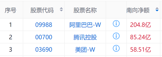 从南向资金增仓的个股来看,近1月,阿里巴巴-W、腾讯控股、美团-W包揽南向资金净买入额TOP3,其中阿里巴巴-W已连续11个交易日获南向资金净买入,期间净买入额超195亿港元,显示港股AI核心资产备受青睐。