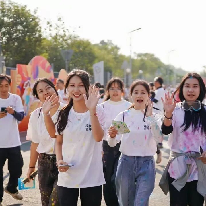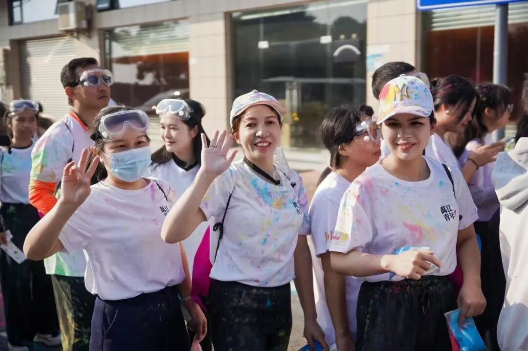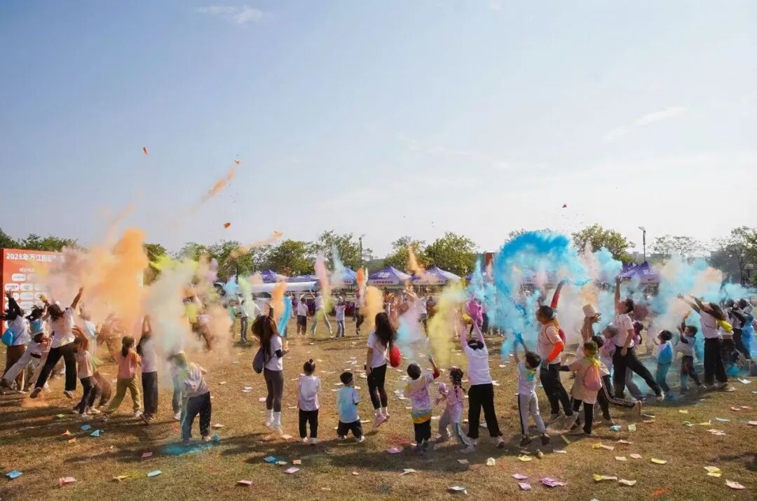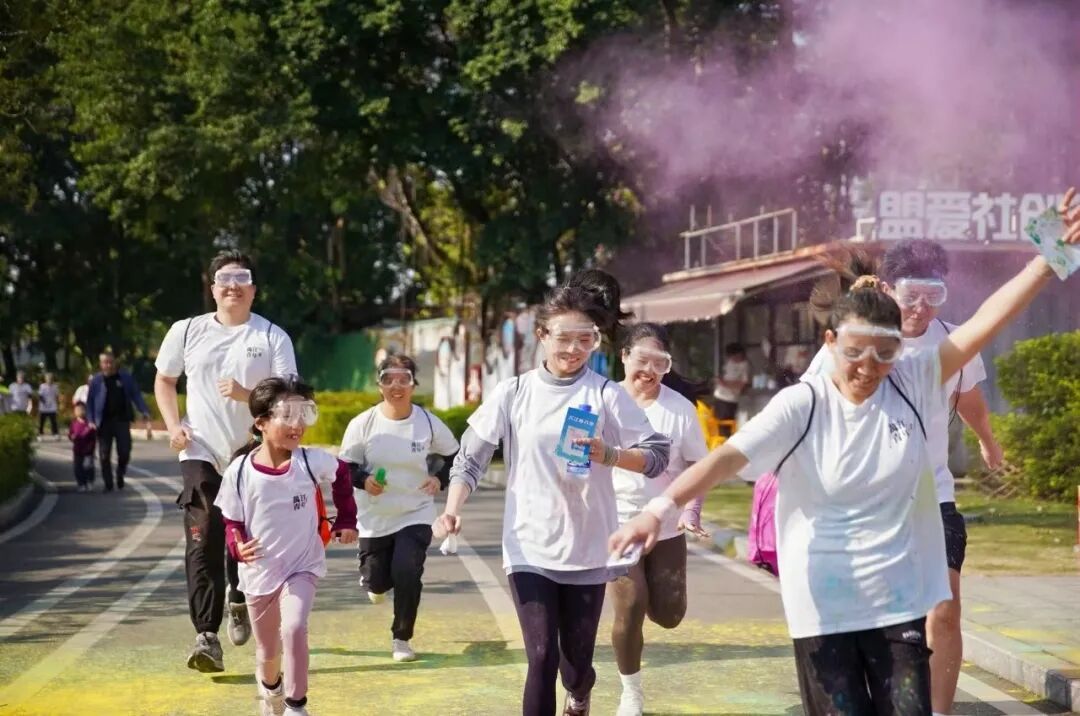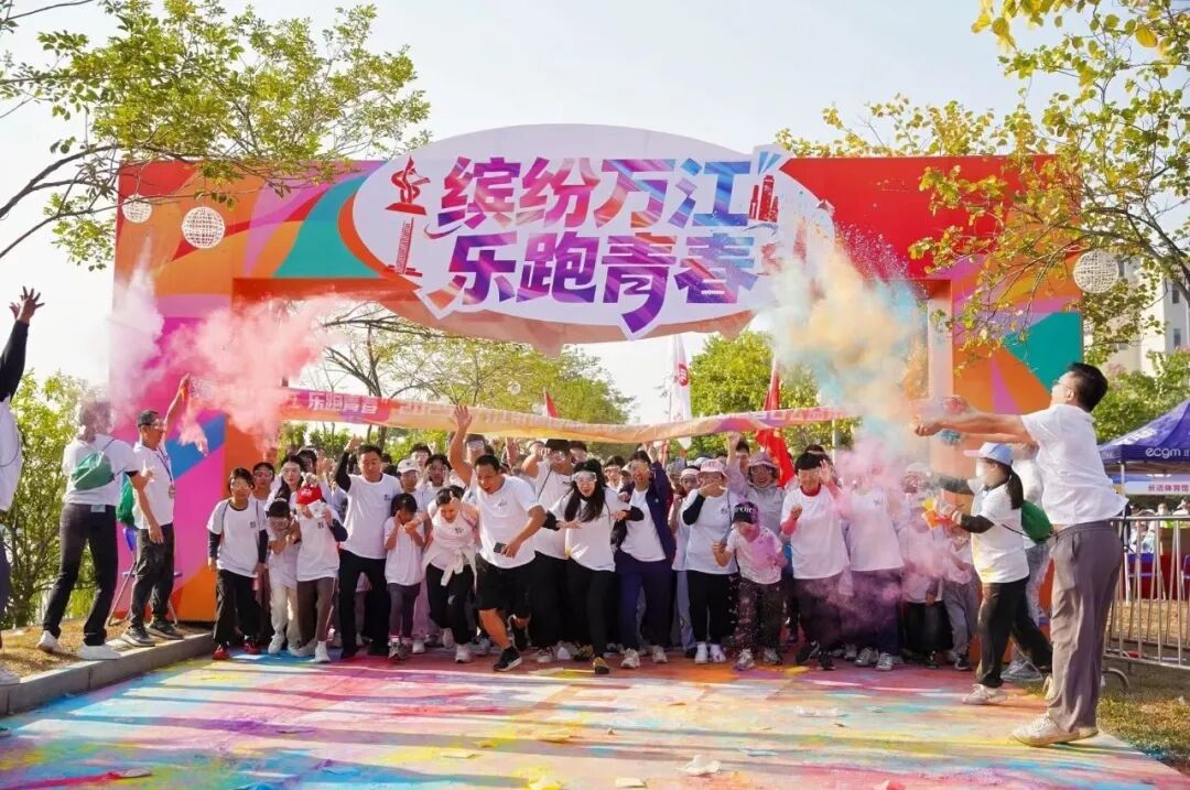 随着清脆的笛音响起,6公里公益乐跑拉开帷幕。跑友们身着统一服装,从滘联社区起龙广场出发,经过万江儿童公园、正丫湾河堤等打卡点,在清新空气与自然美景中尽情奔跑,不时与沿途村民挥手致意。在彩粉投掷点,五彩粉末随风扬起,落在跑友们的衣衫与脸庞上,欢呼声、呐喊声此起彼伏。
