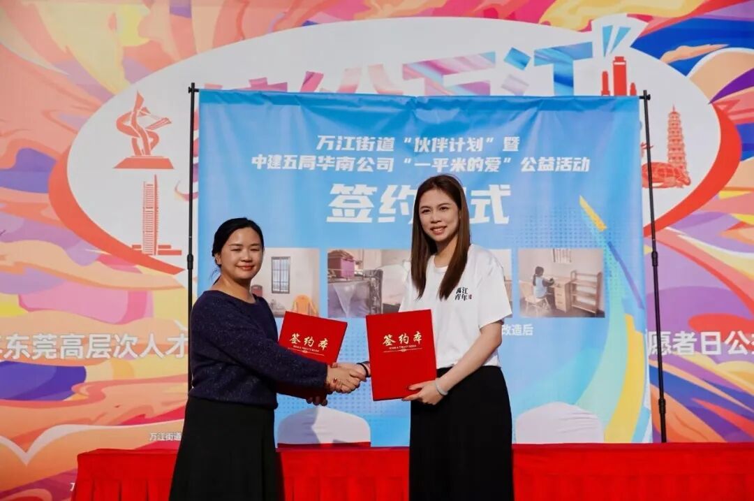 活动现场,中建五局东莞分公司还与万江街道团工委签约“一平米的爱”志愿服务项目,计划年内再为至少10名困境青少年改善学习环境。